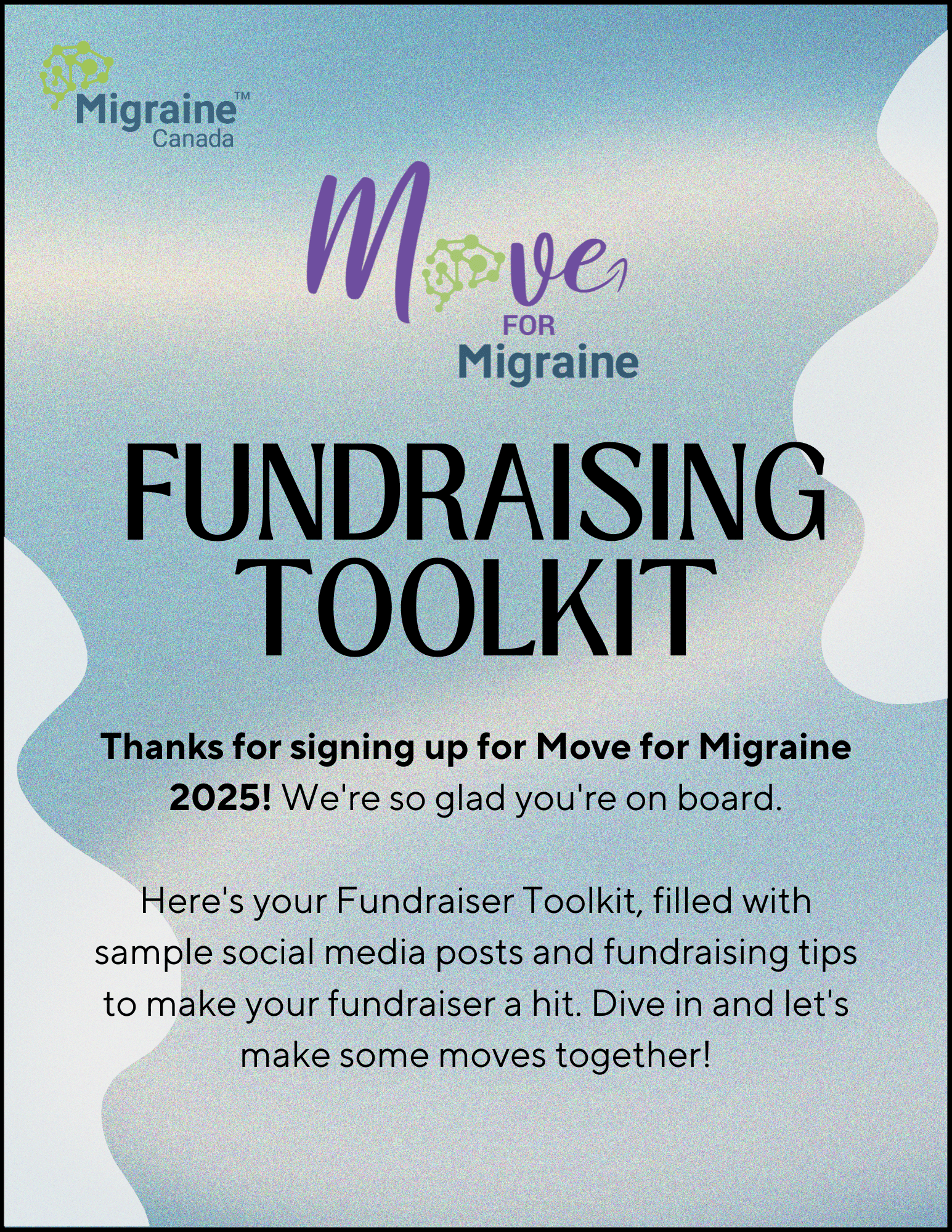 Move for Migraine takes place during Migraine Awareness Month of June. Participants can show their support by running, walking, bicycling, swimming, practicing yoga, relaxing and/or other activities to spread awareness, show support, and fundraise for Migraine Canada.